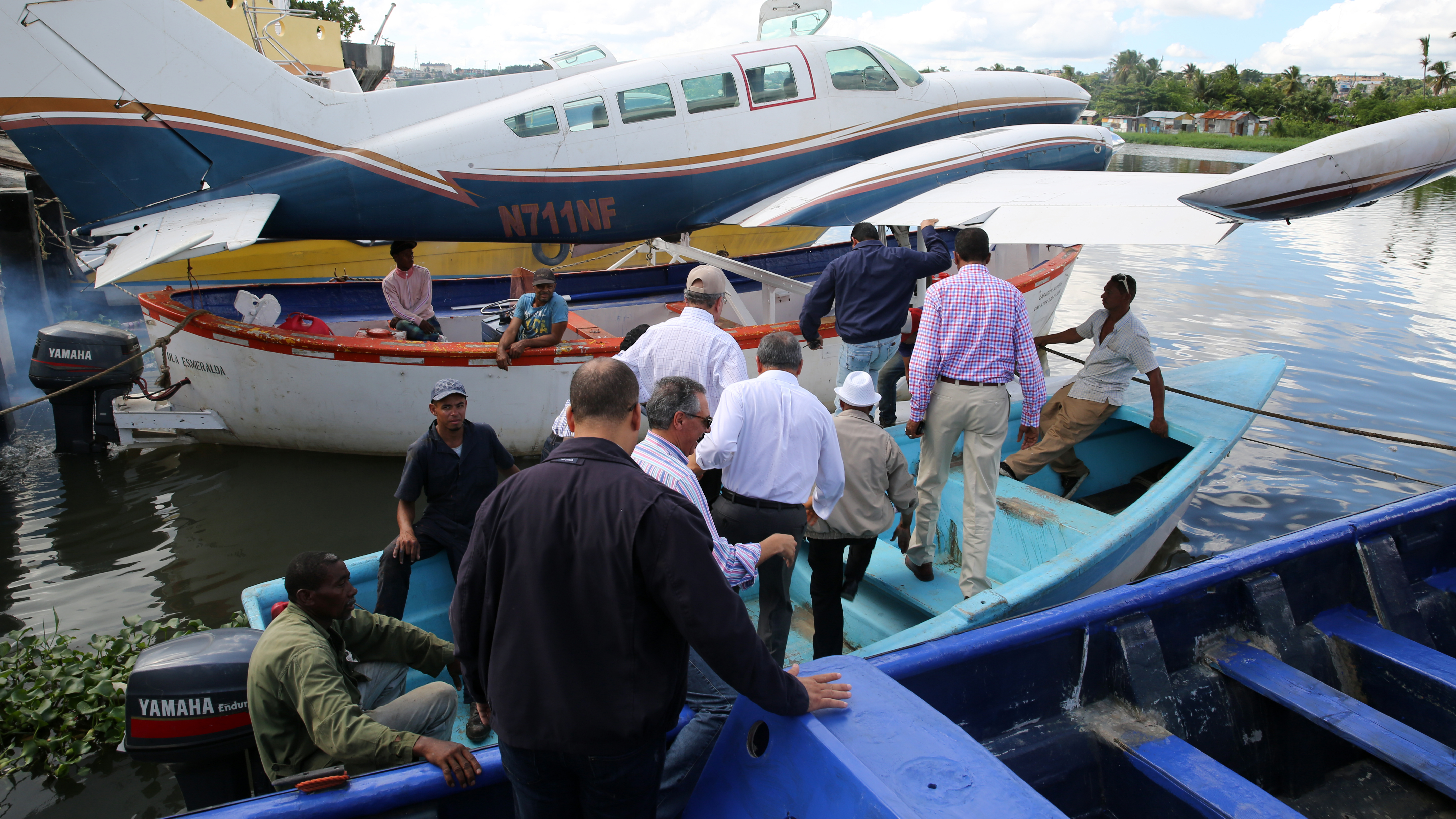 El presidente Danilo Medina abordó un bote en el que recorrió el río Ozama, afectado por una grave contaminación por desechos químicos y humanos.