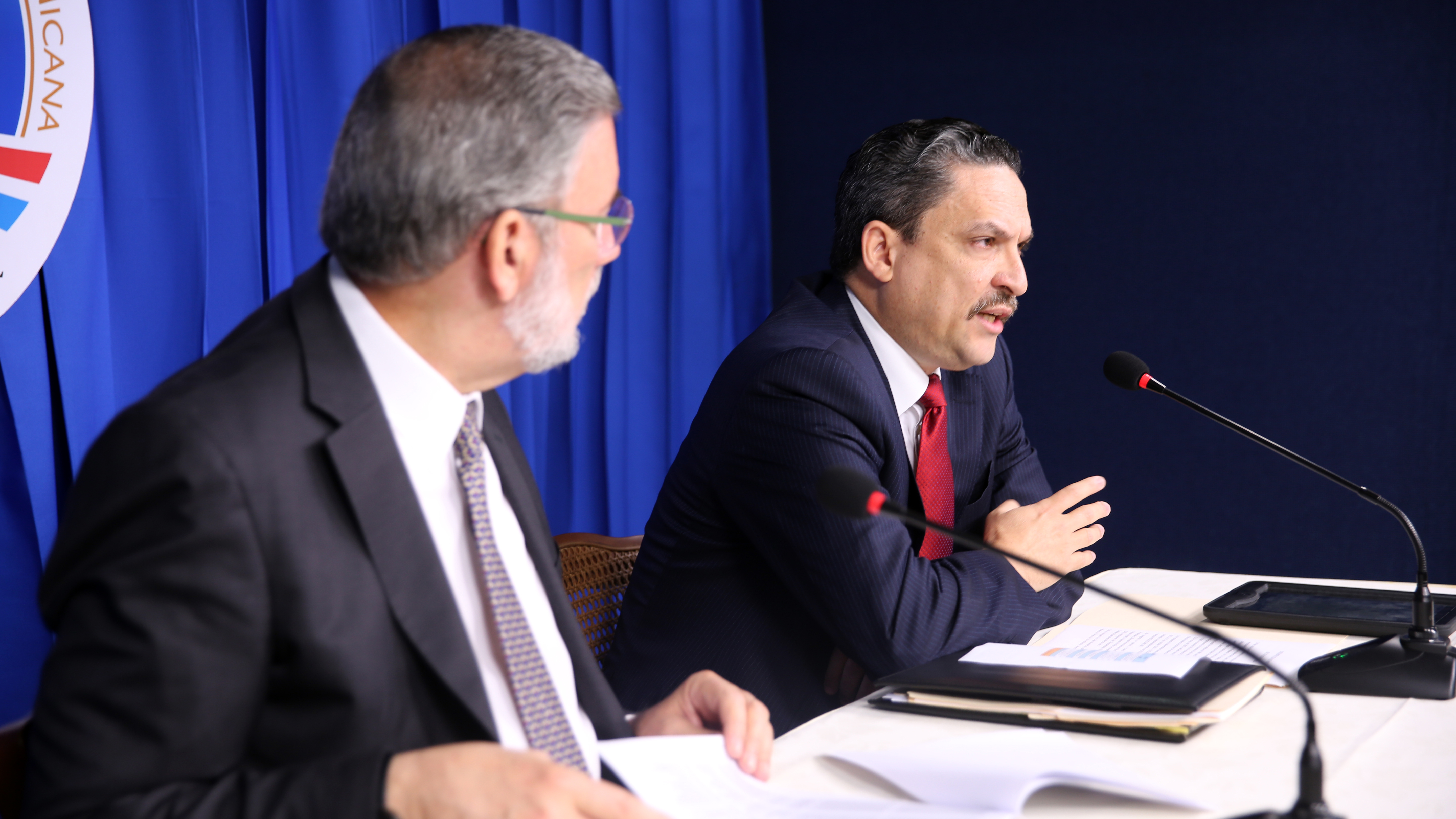 Prieto explicó que el Programa de Reparación de Viviendas del Plan Social de la Presidencia ha asistido a más de 13 mil familias. Le acompaña, el Portavoz del Gobierno y Director General de Comunicación, Roberto Rodríguez Marchena, durante el Encuentro con los Medios y Ciudadanos, efectuado en el Salón Orlando Martínez.