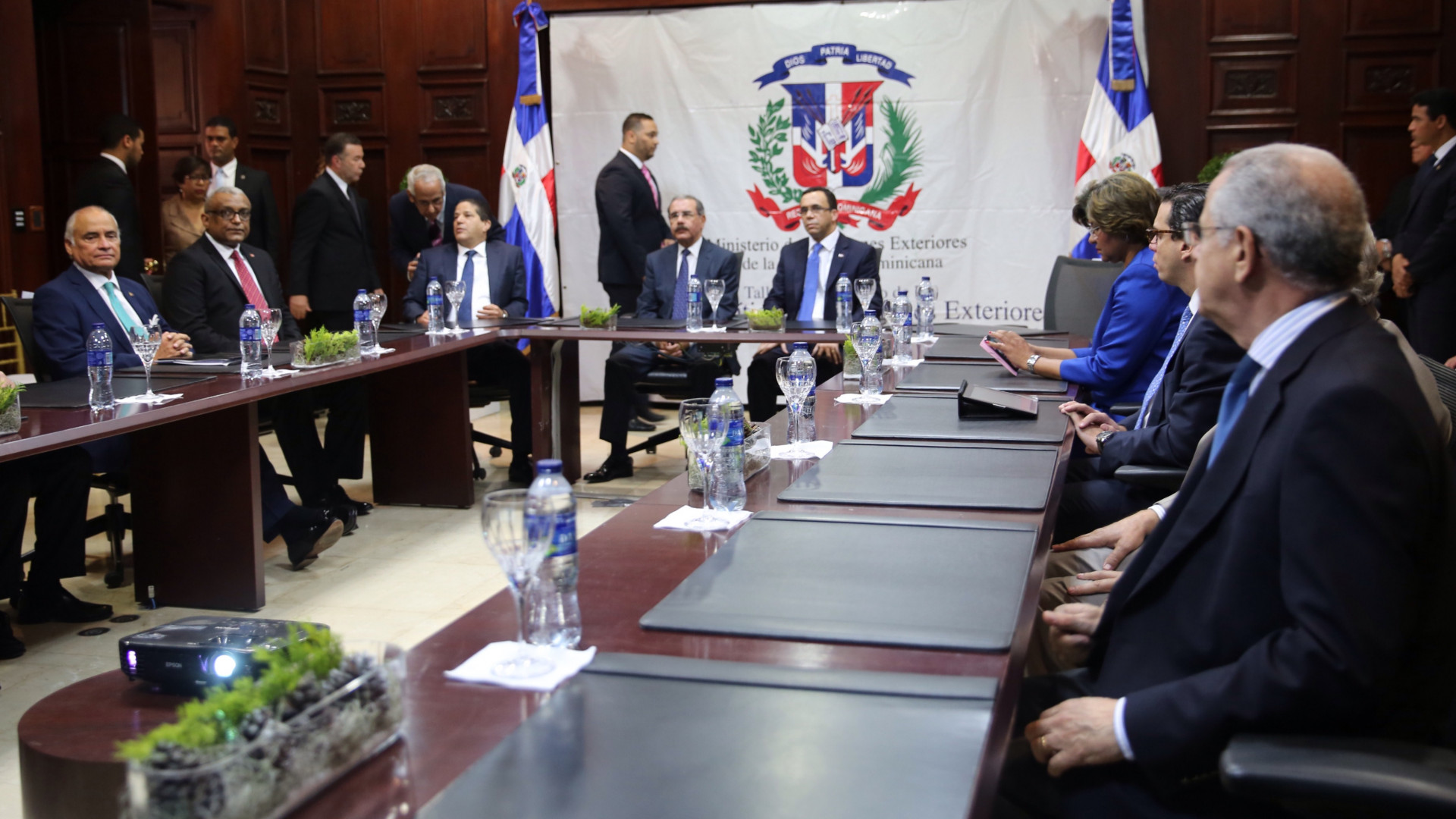 El presidente Danilo Medina encabezó el encuentro de trabajo con el equipo técnico de la Cancillería, en la sede del Ministerio de Relaciones Exteriores.