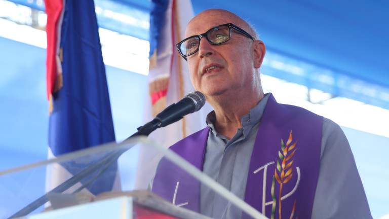 Padre fray José Hernando, del convento Los Dominicos, bendijo el acto y los planteles.