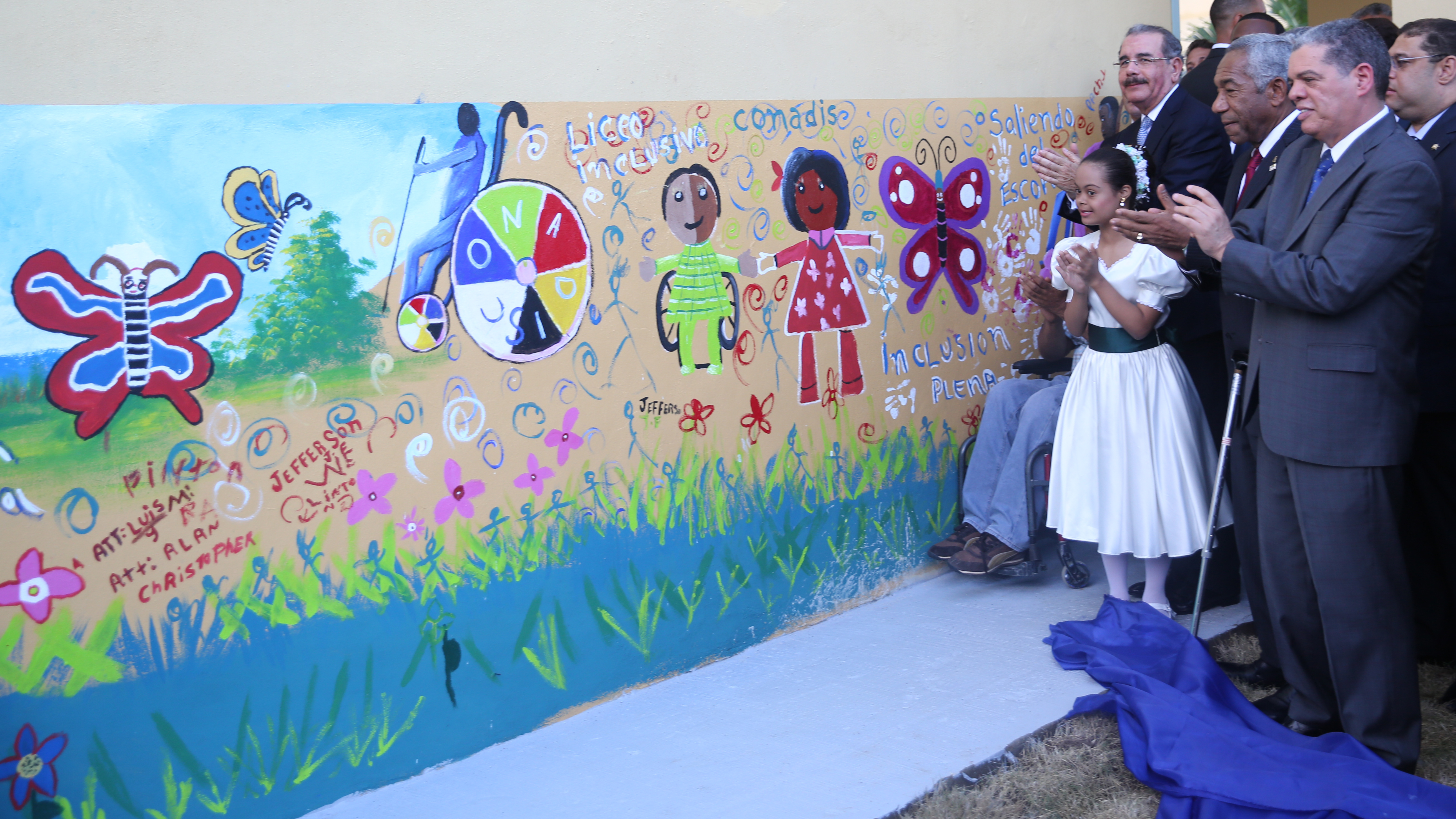 El presidente Danilo Medina develizó un mural de una de las escuelas, pintado por artistas con condiciones especiales.