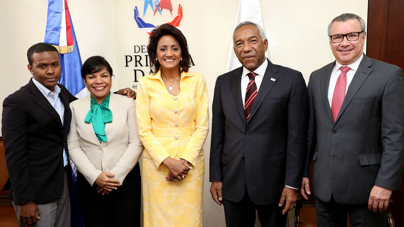 La Primera Dama de la República, Cándida Montilla de Medina, junto a los representantes de Buckner Dominicana y CONADIS, entidades con las cuales suscribió acuerdos para fortalecer el programa Comunidades Inteligentes y el Centro de Atención Integral para la Discapacidad (CAID), respectivamente.