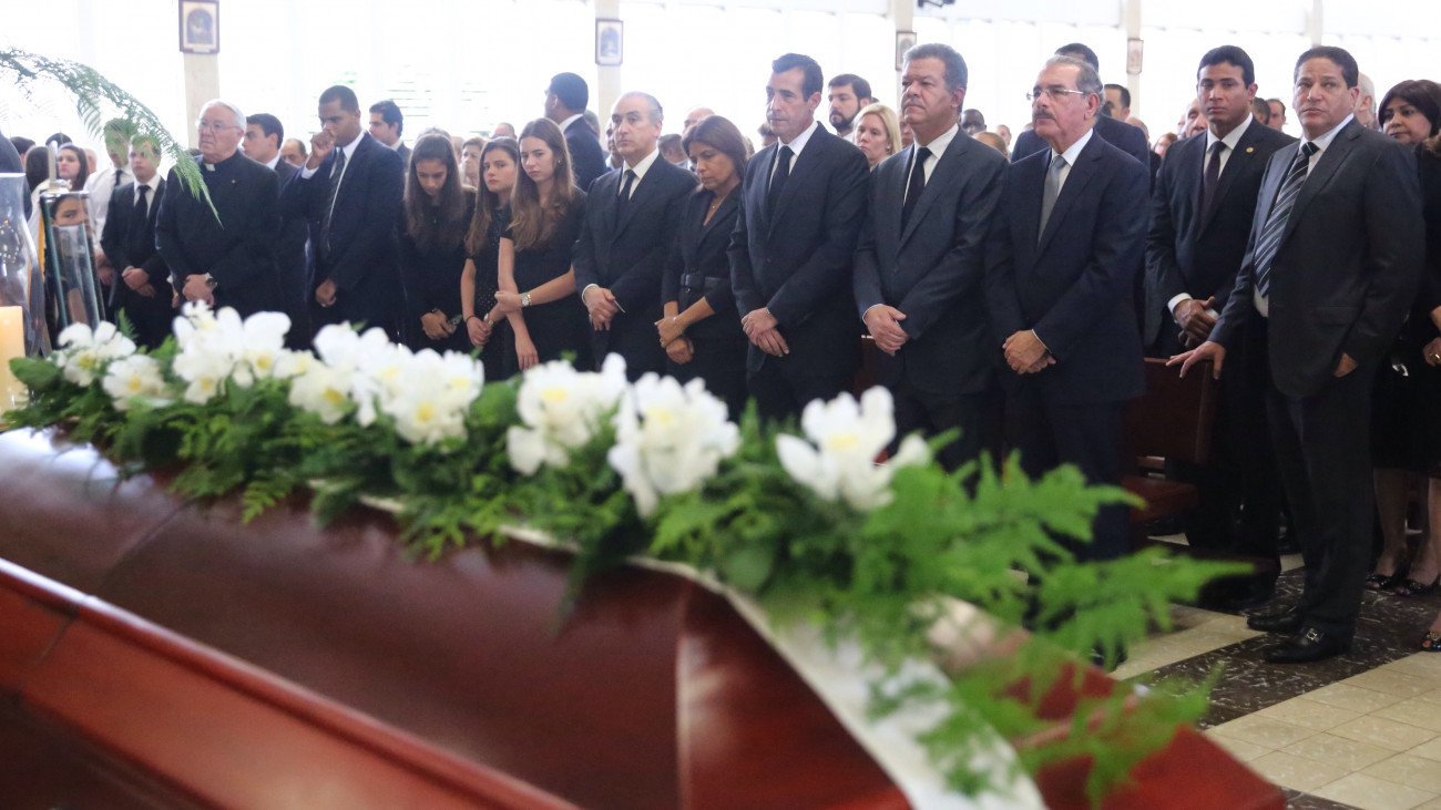 El presidente Danilo Medina y el exmandatario Leonel Fernández junto a familiares del fallecido, don Poppy Bermúdez.