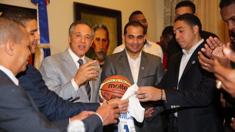 El ministro Peralta recibió el balón y la franela autografiados que los jugadores obsequiaron al presidente Danilo Medina.