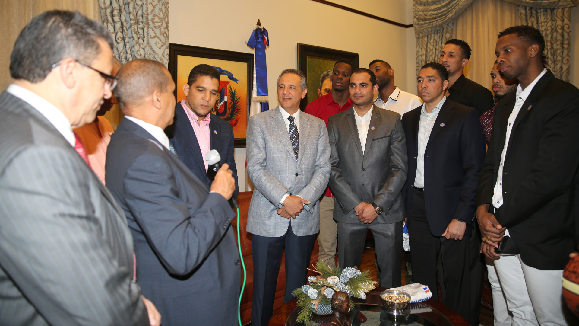 El periodista Leo Corporán agradeció al ministro Administrativo de la Presidencia, José Ramón Peralta, por recibir a los jugadores de baloncesto.