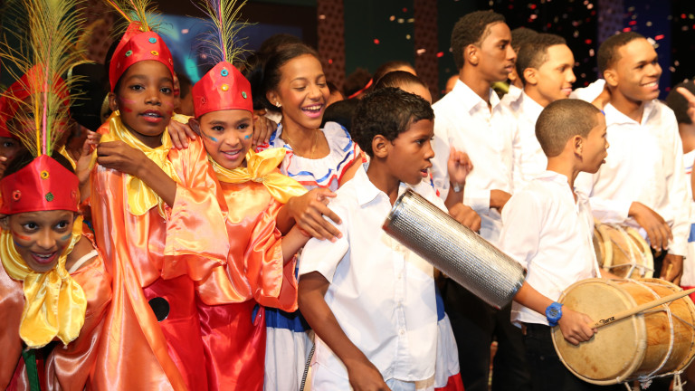 Niños y niñas de La Zurza y Los Guandules de las clases de danza, literatura, música, teatro, títeres y pintura participaron en este especial de navidad, presentado con contagioso entusiasmo en la sala principal del Teatro Nacional Eduardo Brito.