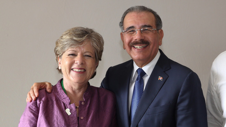 El presidente Danilo Medina y Alicia Bárcena Ibarra, secretaria ejecutiva de la Comisión Económica para América Latina y el Caribe (CEPAL).