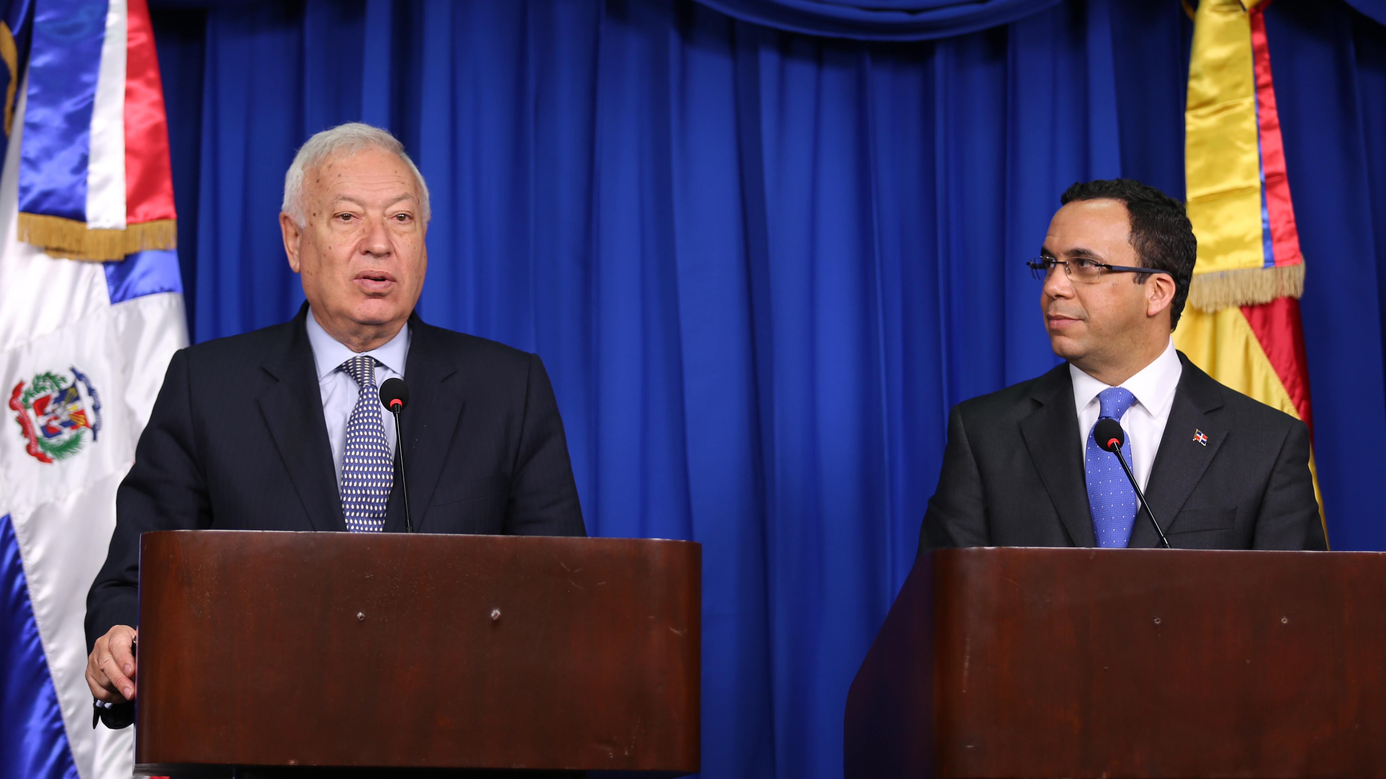 El canciller dominicano, Andrés Navarro; y el ministro de Asuntos Exteriores y de Cooperación de España, José García-Margallo, ofrecieron detalles del encuentro con el presidente Danilo Medina. Foto: Presidencia República Dominicana