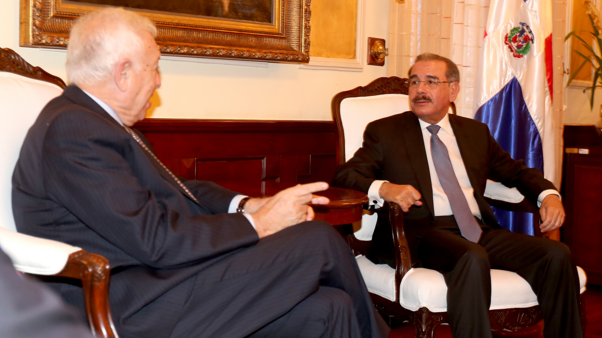 El presidente Danilo Medina recibe, en su despacho del Palacio Nacional, la visita del ministro de Asuntos Exteriores y de Cooperación de España, José García-Margallo. Foto: Presidencia República Dominicana