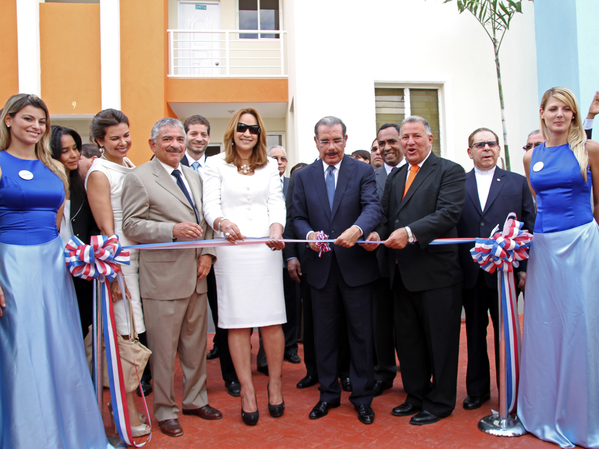 El presidente Danilo Medina al cortar la cinta para dejar inaugurado el Proyecto Habitacional Colinas del Yaque.