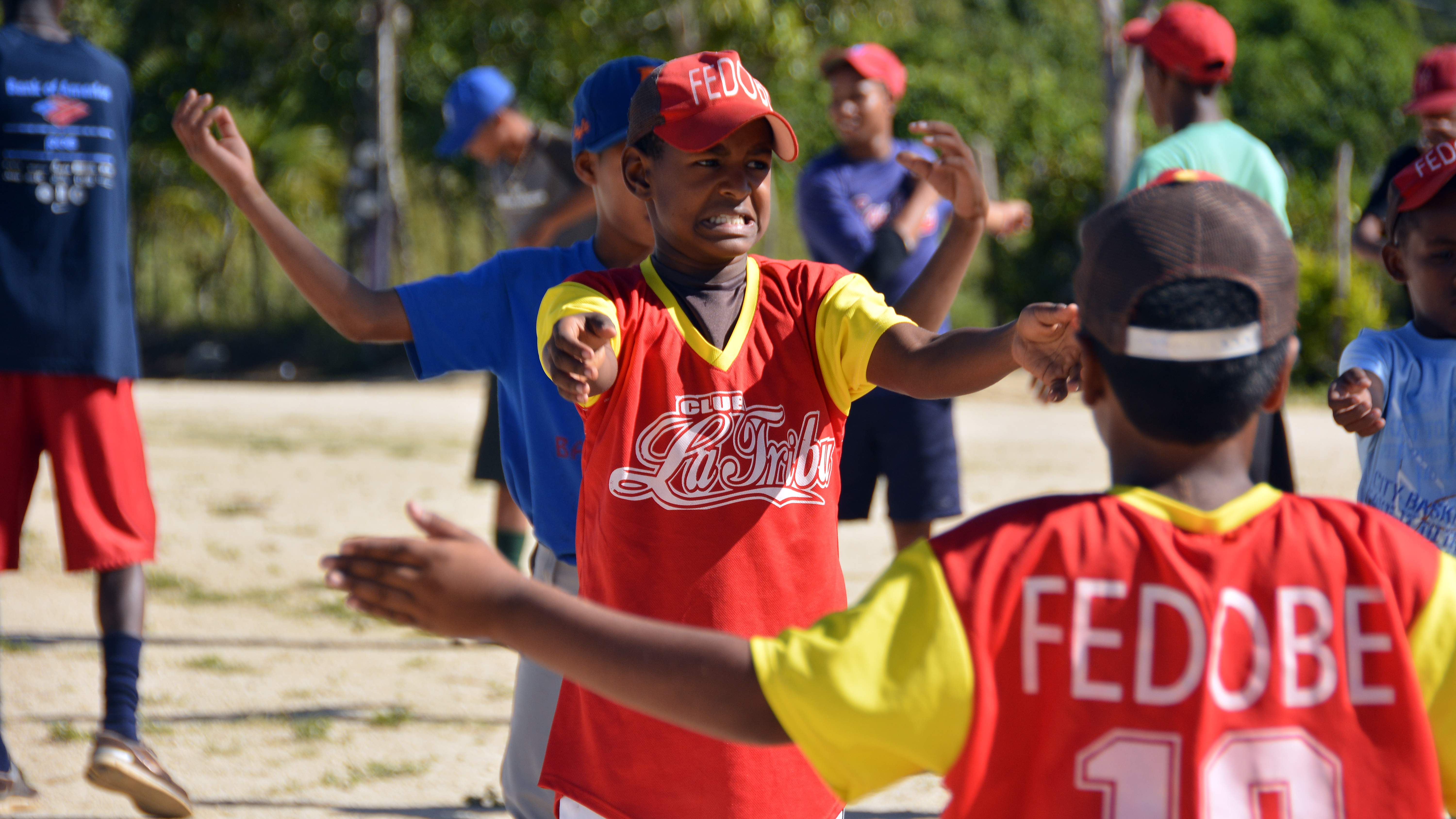 Miembros del Equipo de béisbol juvenil de Miches, en Dajabón, de quienes Juan Martínez es el entrenador. Foto: Presidencia República Dominicana Ver más detalles en: presidencia.gob.do/noticias/palo-por-los-411-video www.youtube.com/watch?v=_E7jwtDJP_A