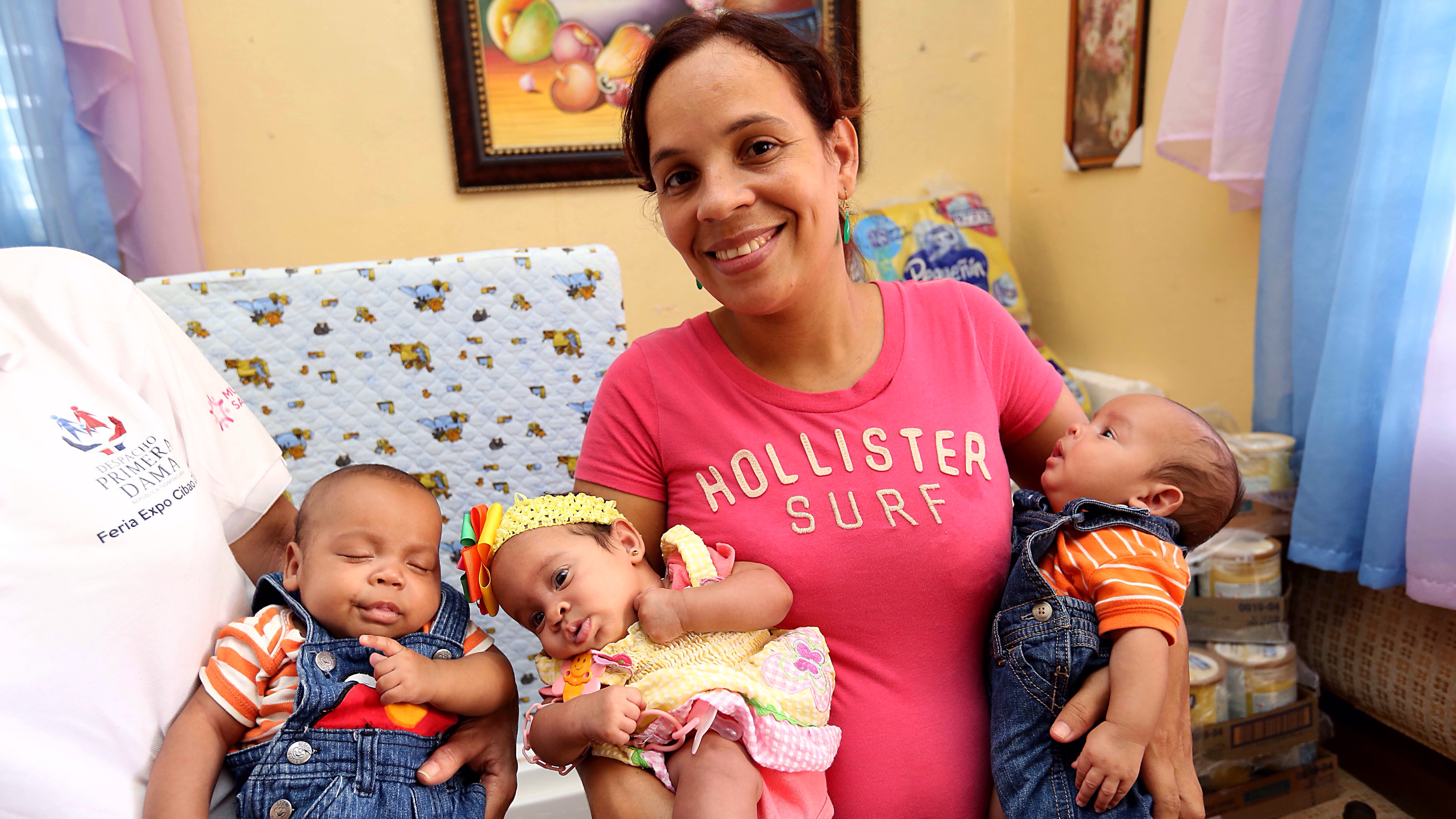 Mediante el Programa de Servicio al Ciudadano, el despacho de la Primera Dama entregó alimentos, muebles y electrodomésticos a dos madres que alumbraron trillizos, de la Región Norte del país. Foto: Despacho de la Primera Dama de la República Ver detalles en: www.facebook.com/DespachoPrimeraDamaDO/photos/pb.34073718...