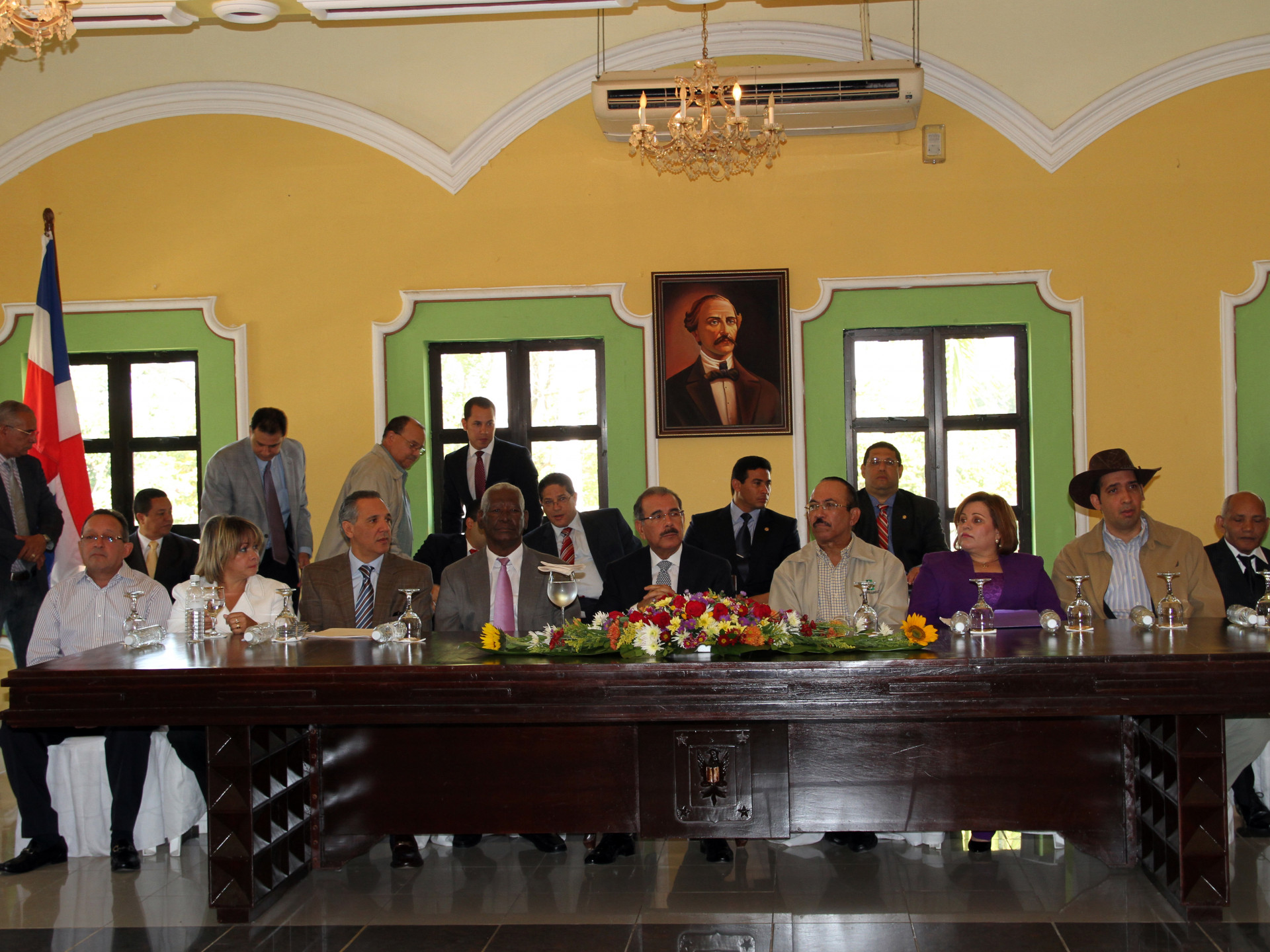 Vista de los integrantes de la mesa principal del acto en San Juan, encabezada por el presidente Danilo Medina; los ministros Administrativo de la Presidencia, José Ramón Peralta; de Agricultura, Luis Ramón Rodríguez; entre otros funcionarios y personalidades de San Juan.