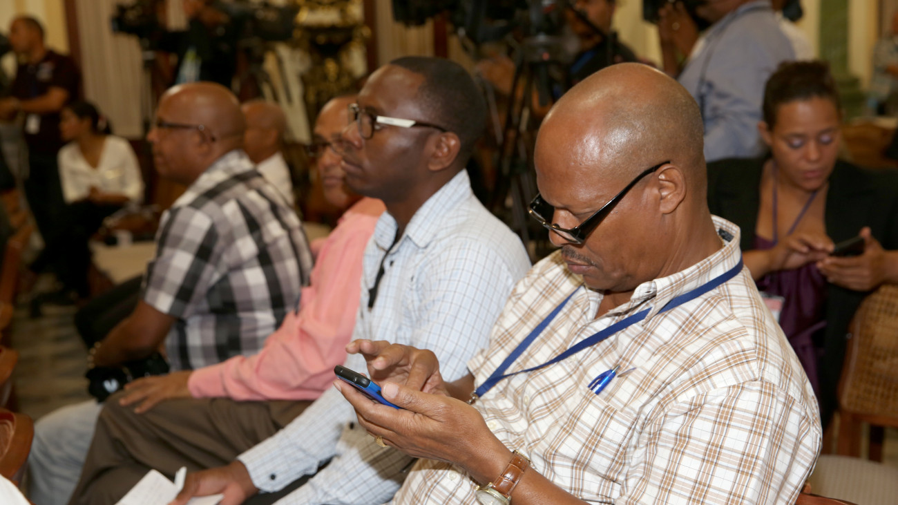 Periodistas que cubren el Palacio Nacional presentes durante el encuentro.
