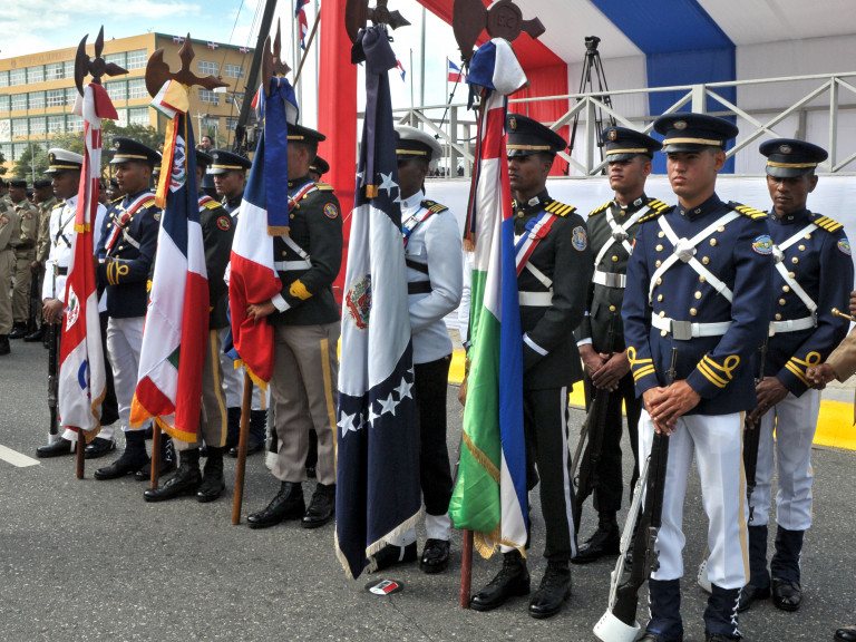 Miembros de los Cuerpos armados portan los símbolos patrios, previo al inicio de la Rendición de Cuentas del presidente Danilo Medina en el Congreso Nacional, y en el 169 aniversario de la Independencia Nacional.