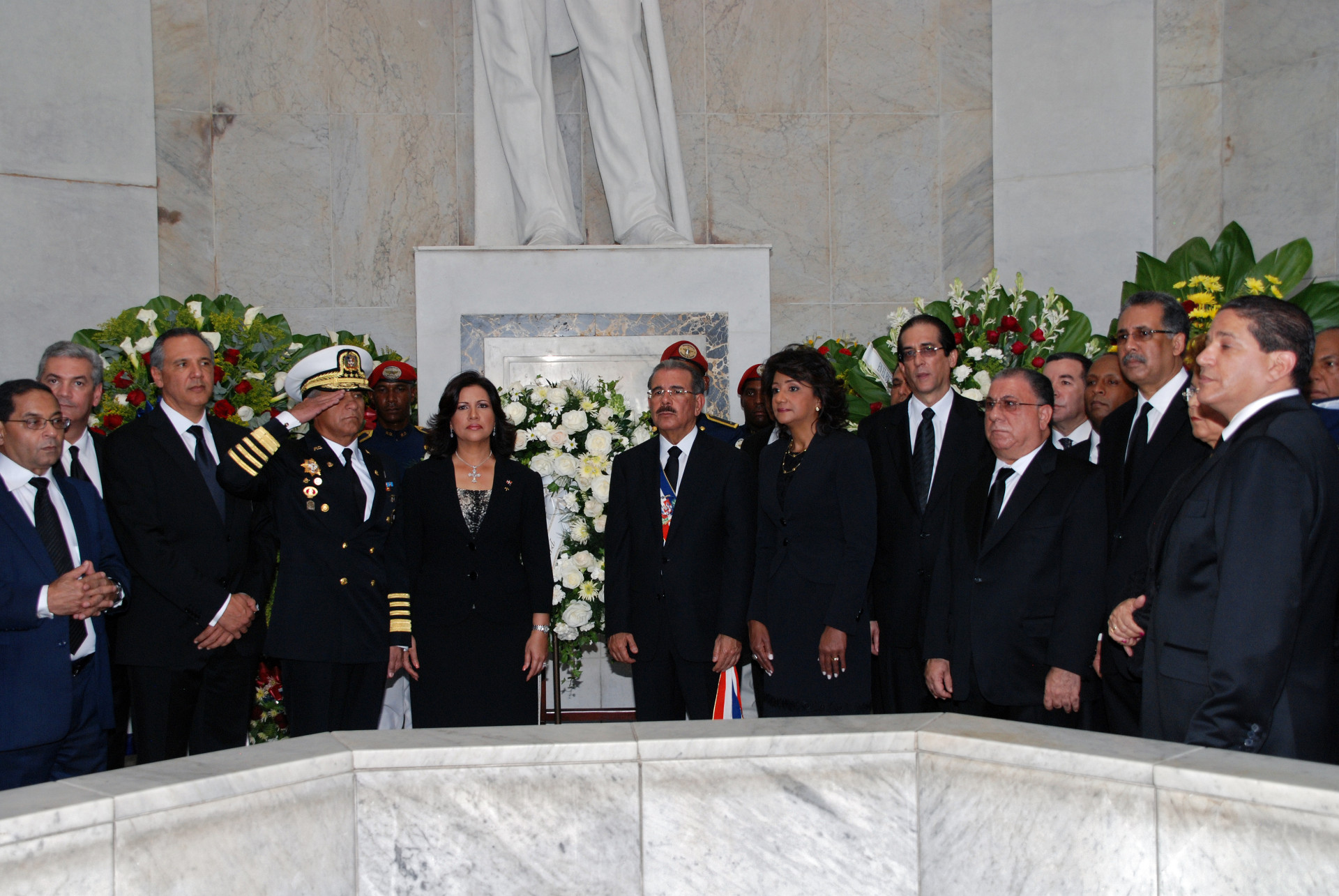 Como es tradicional, la ofrenda floral fue colocada en el Altar de la Patria con la asistencia del presidente Danilo Medina, la vicepresidenta Margarita Cedeño de Fernández, la primera dama Cándida Montilla de Medina, funcionarios y autoridades civiles y militares.