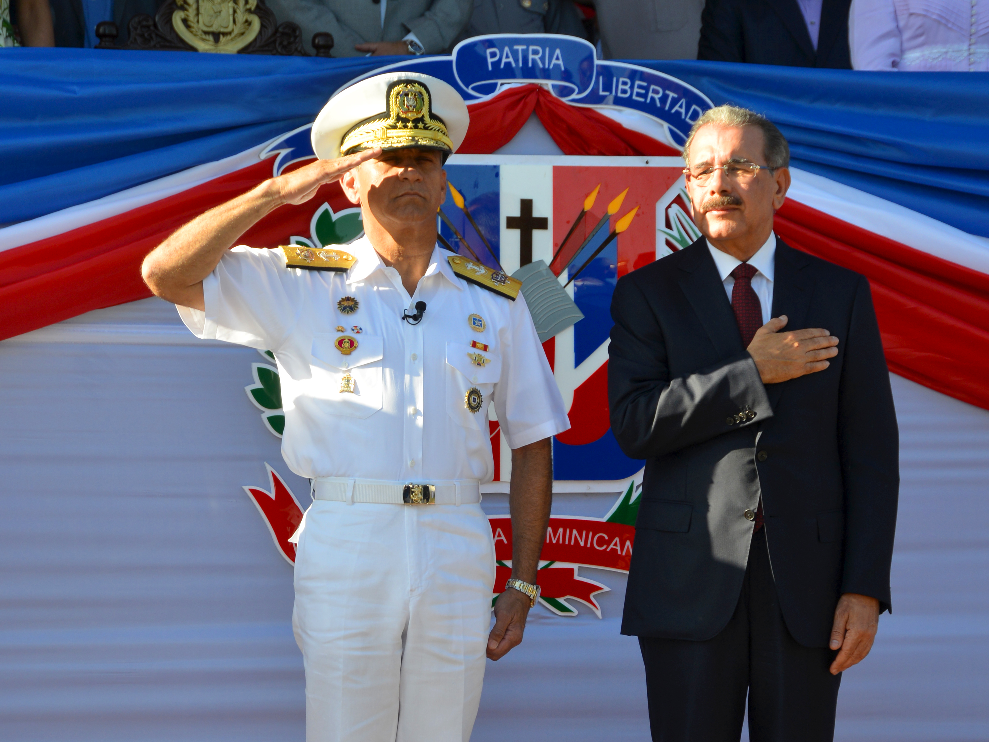 Las notas del Himno acompañadas por las salvas se escucharon como parte del recibimiento al presidente Danilo Medina.