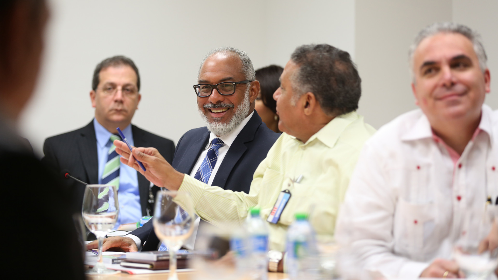 Participación de los periodistas Roberto Cavada, Radhamés Gómez Pepín y Persio Maldonado, que asistieron al encuentro encabezado por el ministro de la Presidencia, Gustavo Montalvo.
