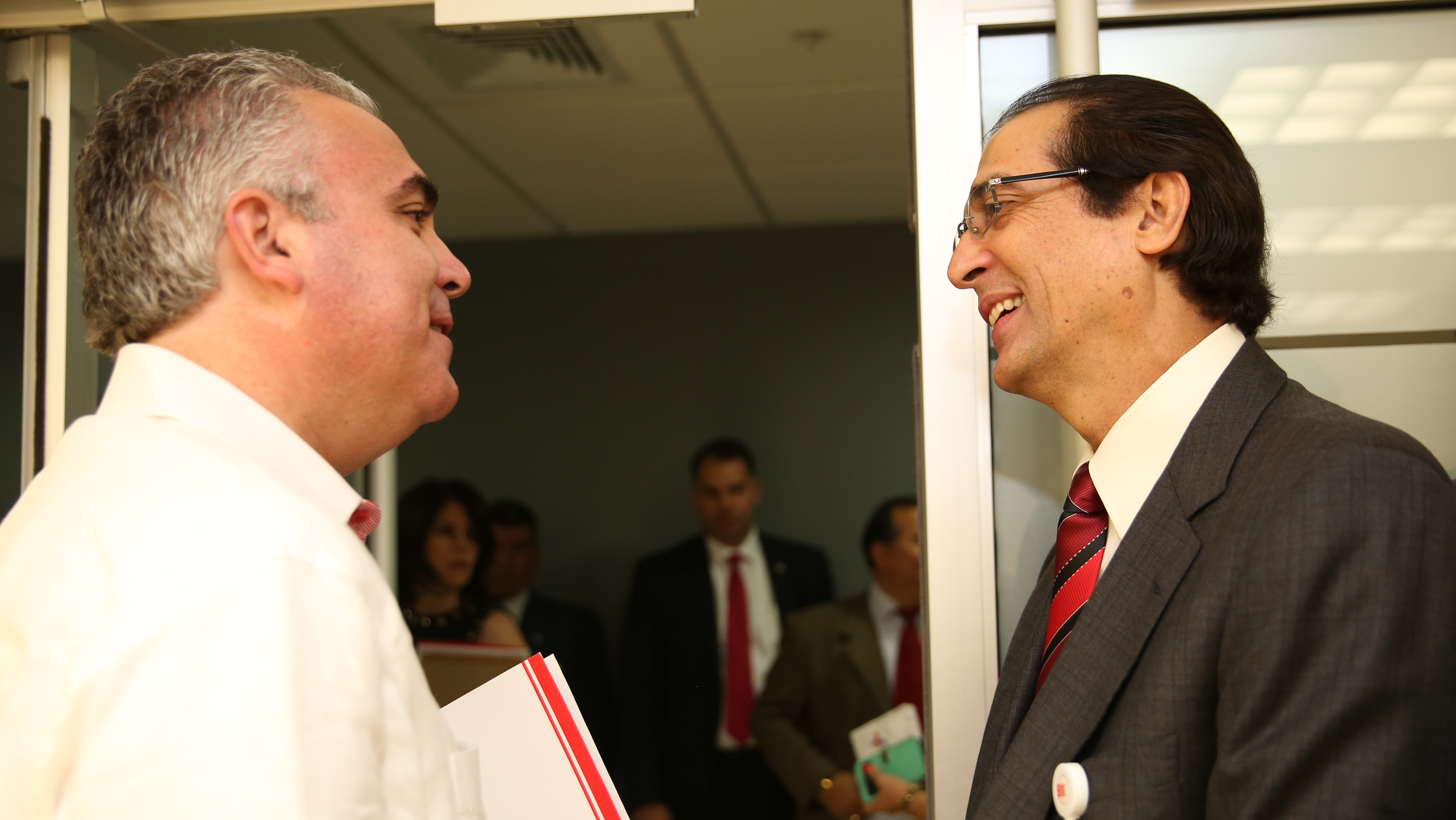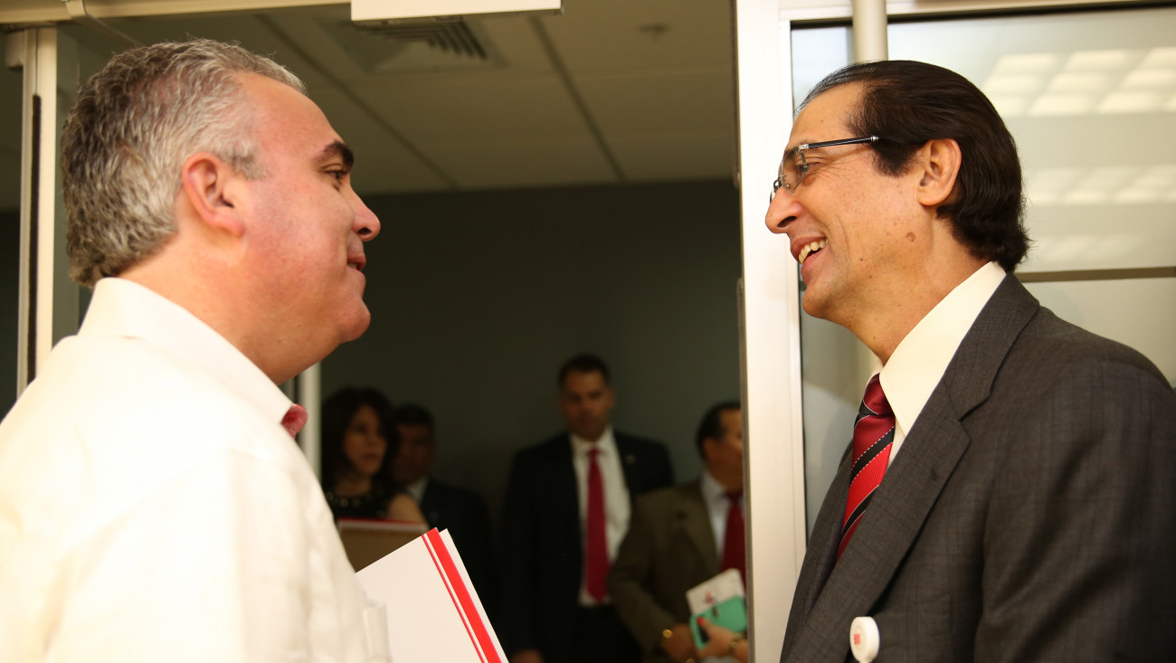 El ministro de la Presidencia, Gustavo Montalvo, y el periodista Roberto Cavada, durante su participación en el encuentro.