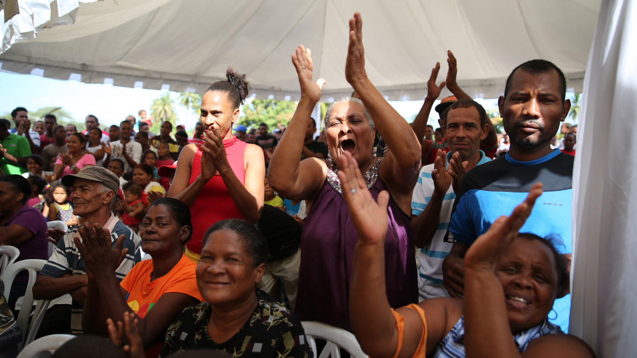 Participantes en el encuentro con el presidente Danilo Medina, en su Visita sorpresa por los municipios de Paraíso y Cabral, en la provincia Barahona.