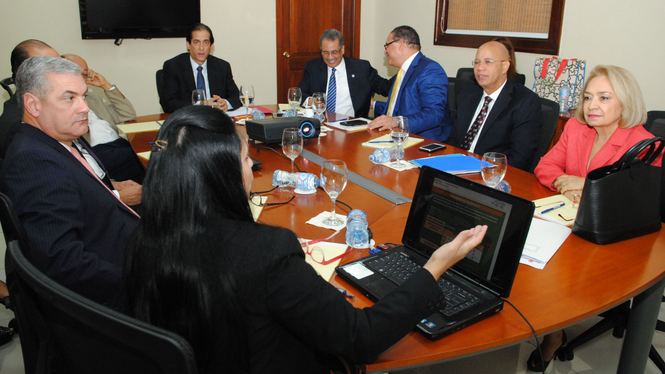 Reunión del Comité Fiduciario Ciudad Juan Bosch, presidido por el ministro de la Presidencia, Gustavo Montalvo, junto al ministro de Economía Planificación y Desarrollo, Ing. Temístocles Montás; el ministro de Hacienda, Lic. Simón Lizardo; ministro de Obras Públicas, Gonzalo Castillo; la directora general del Instituto Nacional de la Vivienda, Arq. Alma Fernández; y el administrador del Banco de Reservas, Lic. Enrique Ramírez, entre otros.