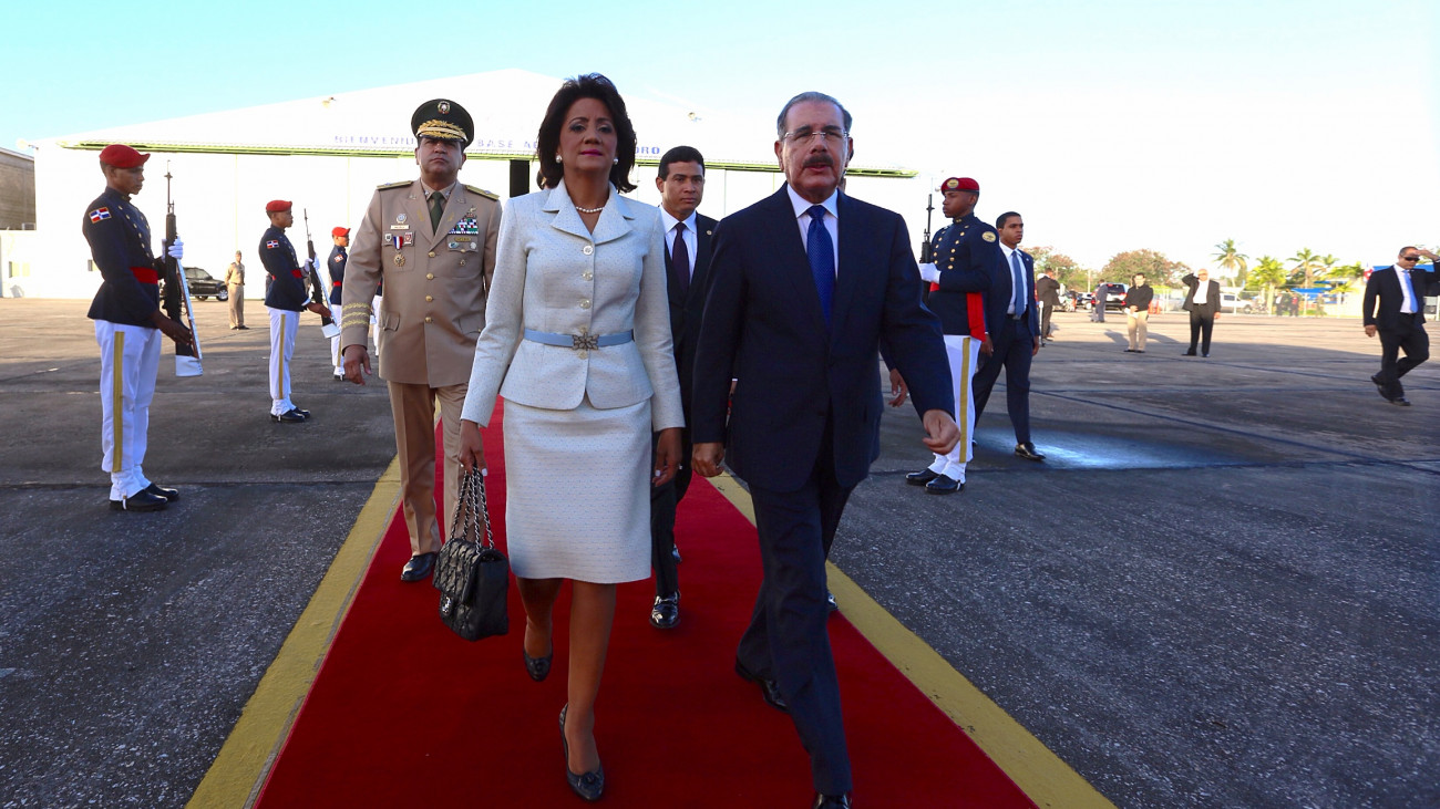 Presidente Danilo Medina acompañado de su esposa, señora Cándida Montilla de Medina, durante su salida del país por la Base Aérea de San Isidro en ocasión del viaje oficial a Puerto Rico para oficializar los acuerdos alcanzados con nuestra isla.