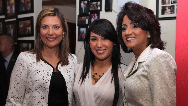 Participación de la señora Cándida Montilla de Medina, durante almuerzo en restaurante de comida dominicana en la vecina isla, junto a su anfitriona, señora Wilma Pastrana Jiménez y otra dama participante.