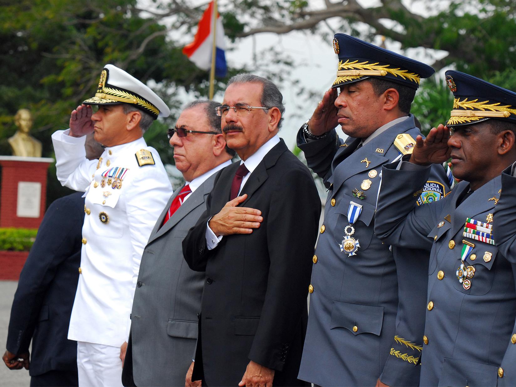 El presidente Danilo Medina fue recibido con los honores militares de estilo correspondientes a su investidura, durante la XXXV Promoción de Cadetes de la Policía Nacional.