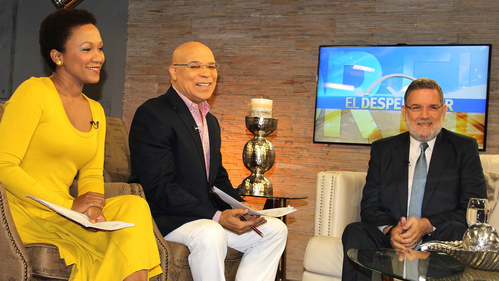 Edith Febles y Marino Zapete, productores del programa El Despertador, que producen por Color Visión, acompañados del director de DICOM, Roberto Rodríguez Marchena.