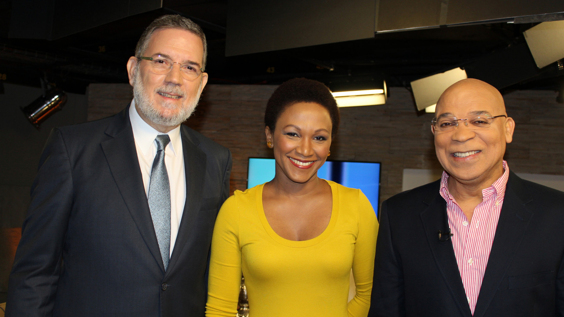 A la izquierda, el portavoz del Gobierno y director de DICOM, Roberto Rodríguez Marchena, acompañado de Edith Febles y Marino Zapete, productores del programa El Despertador, que producen por Color Visión.