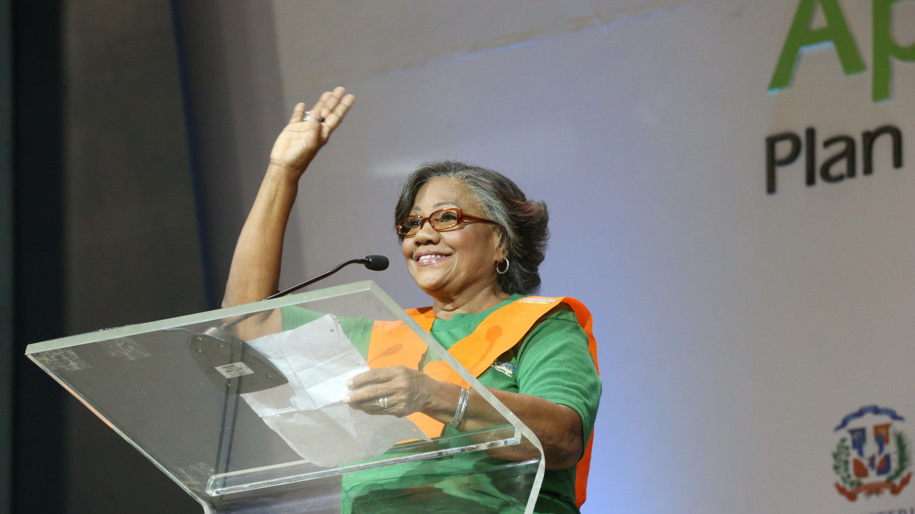 Miriam Teresa De Jesús, alfabetizada, habló en nombre de los graduandos del Distrito Nacional, y dijo que el Plan Nacional de Alfabetización para ella y muchas personas era un sueño que, gracias al presidente Danilo Medina, lo lograron.