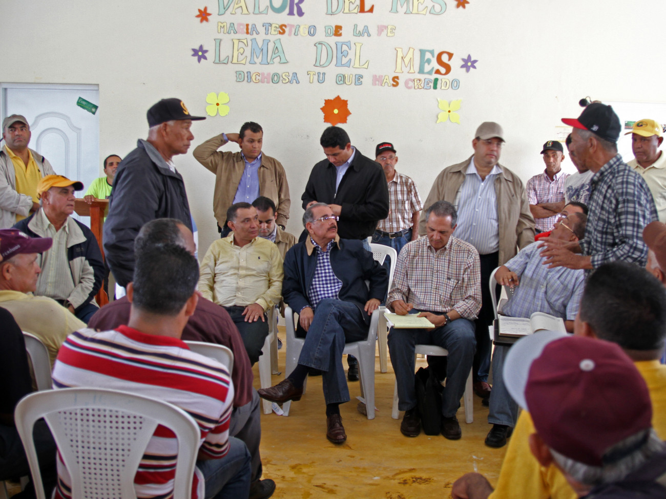 El presidente Danilo Medina escucha a uno de los productores de la comunidad de La Caída, en Pueblo Nuevo, Valverde.