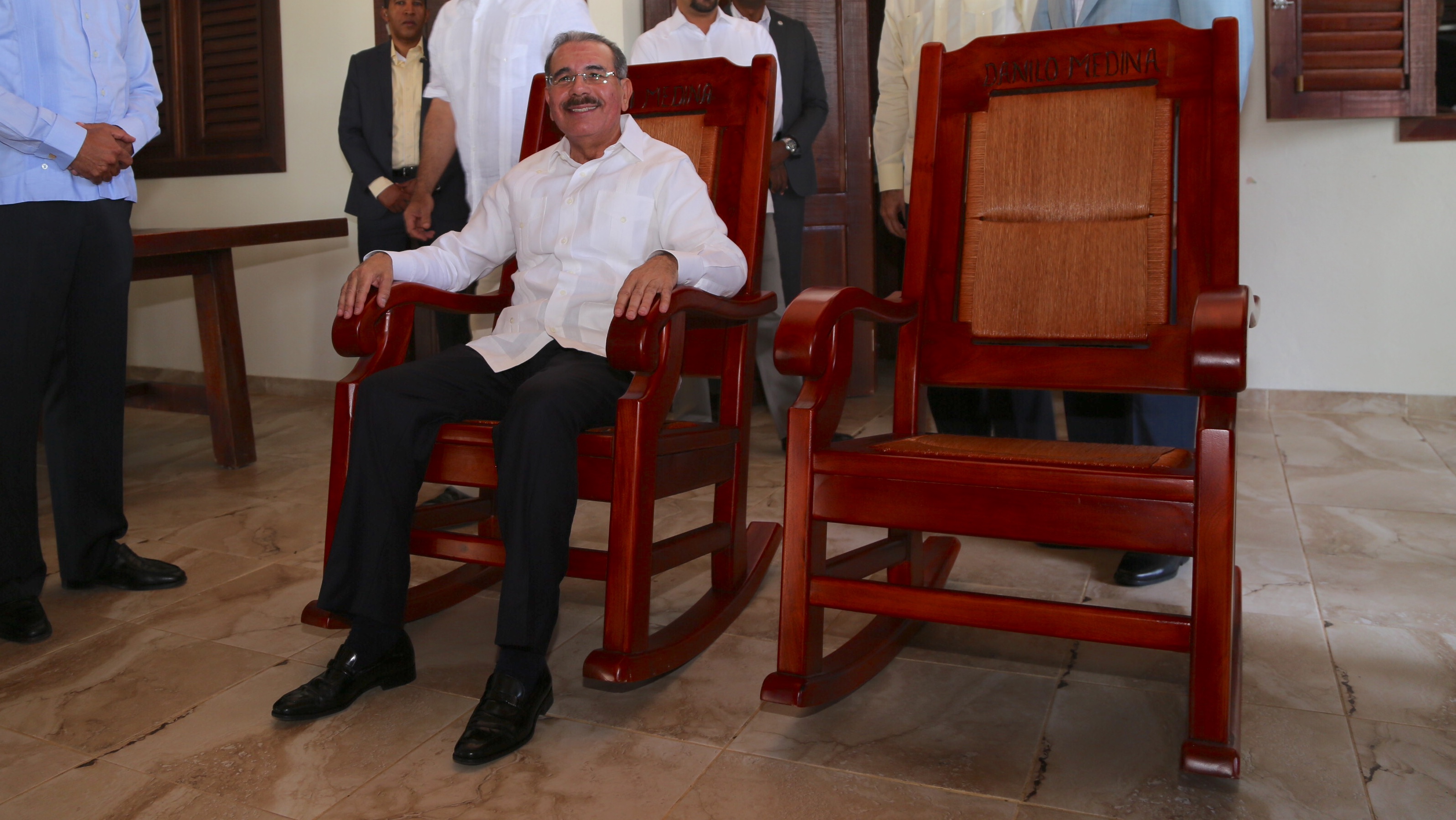 En el transcurso de su visita a este municipio de San José de las Matas, el Jefe de Estado recibió como obsequio dos mecedoras de caoba, una para él y la otra para la primera dama, Cándida Montilla de Medina. Foto: José Luis Torres/Presidencia República Dominicana new.livestream.com/PresidenciaRD/MunicipioEcoTuristicoyPr... www.youtube.com/watch?v=RpiQFYfcMY8