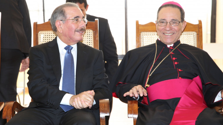 El presidente Danilo Medina y monseñor Nicanor Peña, obispo de la Diócesis de La Altagracia.