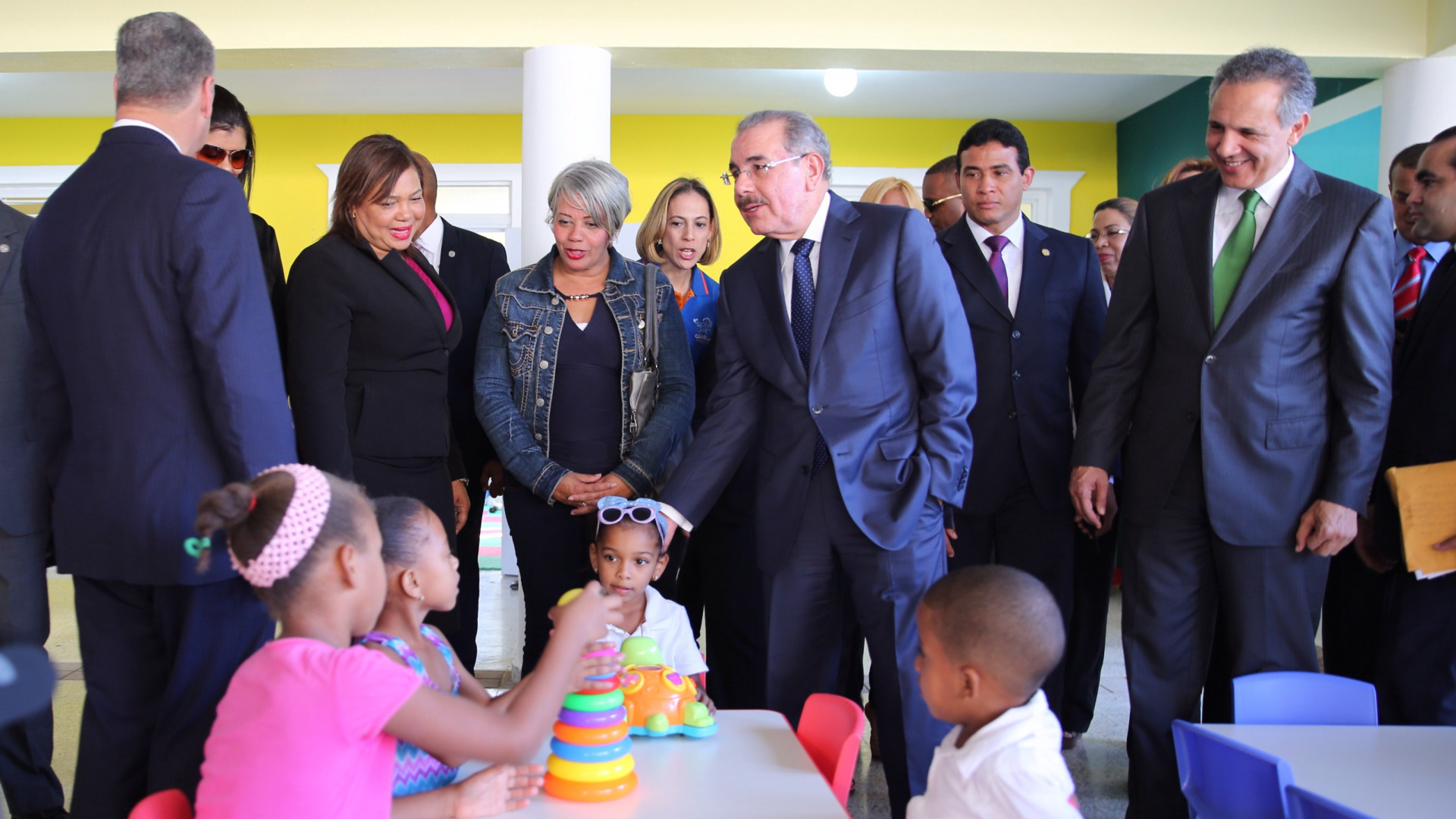 Terminada la ceremonia, el presidente Danilo Medina cortó la cinta que dejó inaugurada la estancia infantil e hizo un recorrido por las instalaciones.