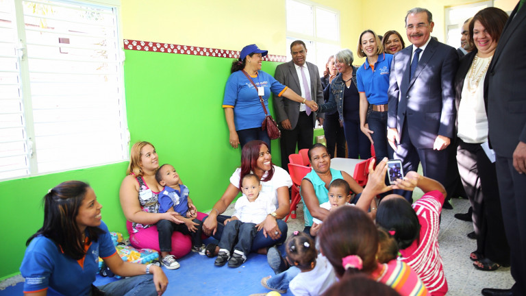 Terminada la ceremonia, el presidente Danilo Medina cortó la cinta que dejó inaugurada la estancia infantil e hizo un recorrido por las instalaciones.