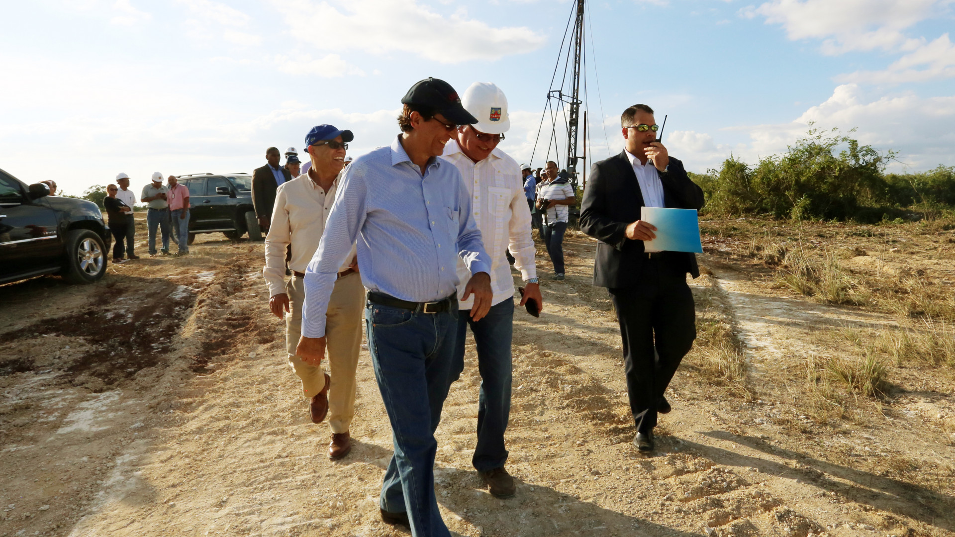 El ministro de la Presidencia, Gustavo Montalvo, junto a los directores de la CAASD, EdeEste y representante de Obras Públicas supervisaron el inicio de los trabajos de infraestructura básica del Proyecto Ciudad Juan Bosch.