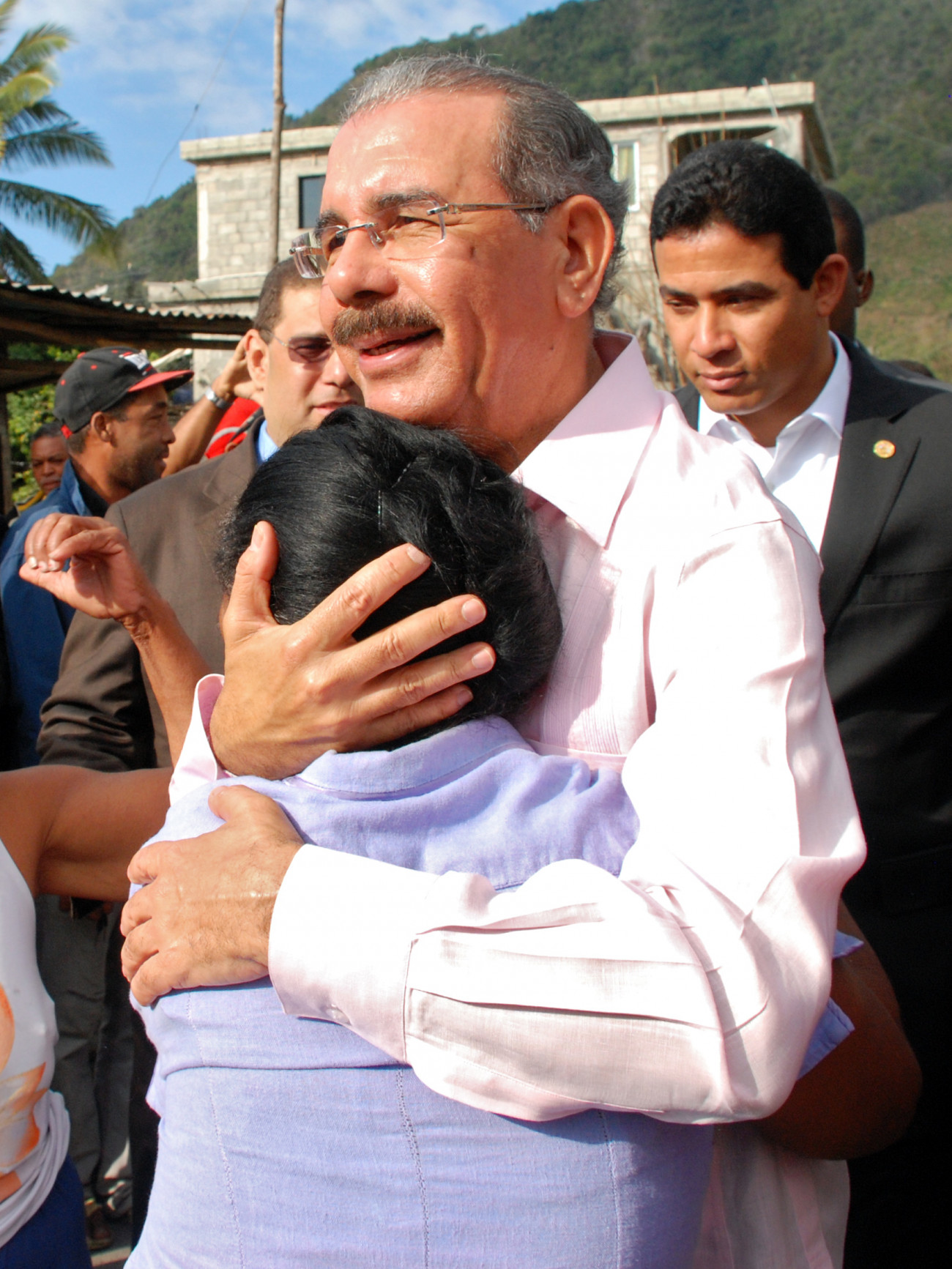El presidente Danilo Medina saluda con afecto a una señora en Carrizal, Azua.