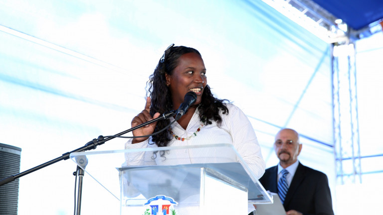 Bethania Paulino, representante de la comunidad y madre soltera beneficiada, expresó las gracias al presidente Danilo Medina por pensar en los niños, al construirle esas estancias infantiles.