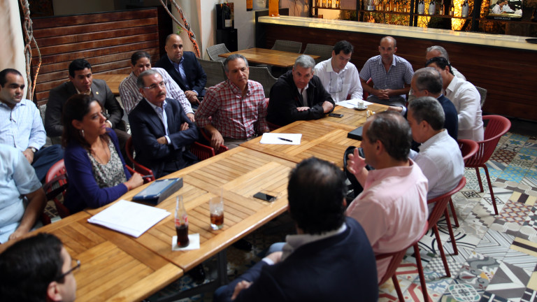Presidente Danilo Medina, reunido con el presidente de la Asociación Ciudad de Ovando; Maribel Villalona, Coordinadora General del Programa de Remozamiento de la Zona Colonial; Carlos Pared Vidal, presentante del gobierno dominicano ante el BID; representantes de juntas de vecinos del lugar y los empresarios José Miguel González Cuadra y Juan Vicini, entre otros.