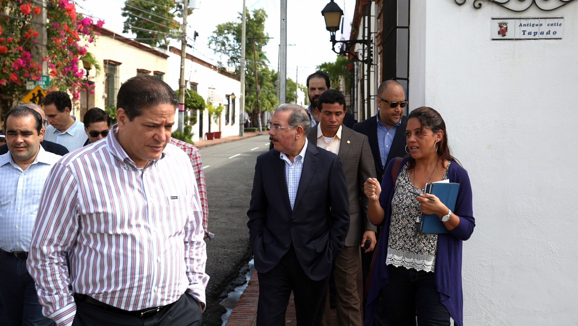 Recorrido del presidente Danilo Medina por el Centro Histórico de la Capital, donde dispuso la agilización de la remodelación, adecuación y rescate de esta importante zona