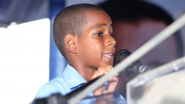 “Todas las familias de San Luis están agradecidas, porque en la gestión del presidente Medina tenemos Jornada Extendida”, aseguró el alumno Darwing Mesa, al expresar las gracias en nombre de sus compañeros, por el plantel recibido en el día de hoy.