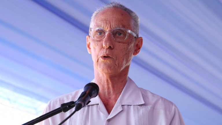 El padre Francisco Almonte, de la parroquia Beato Julio Santiago, bendijo la escuela y el acto inaugural.