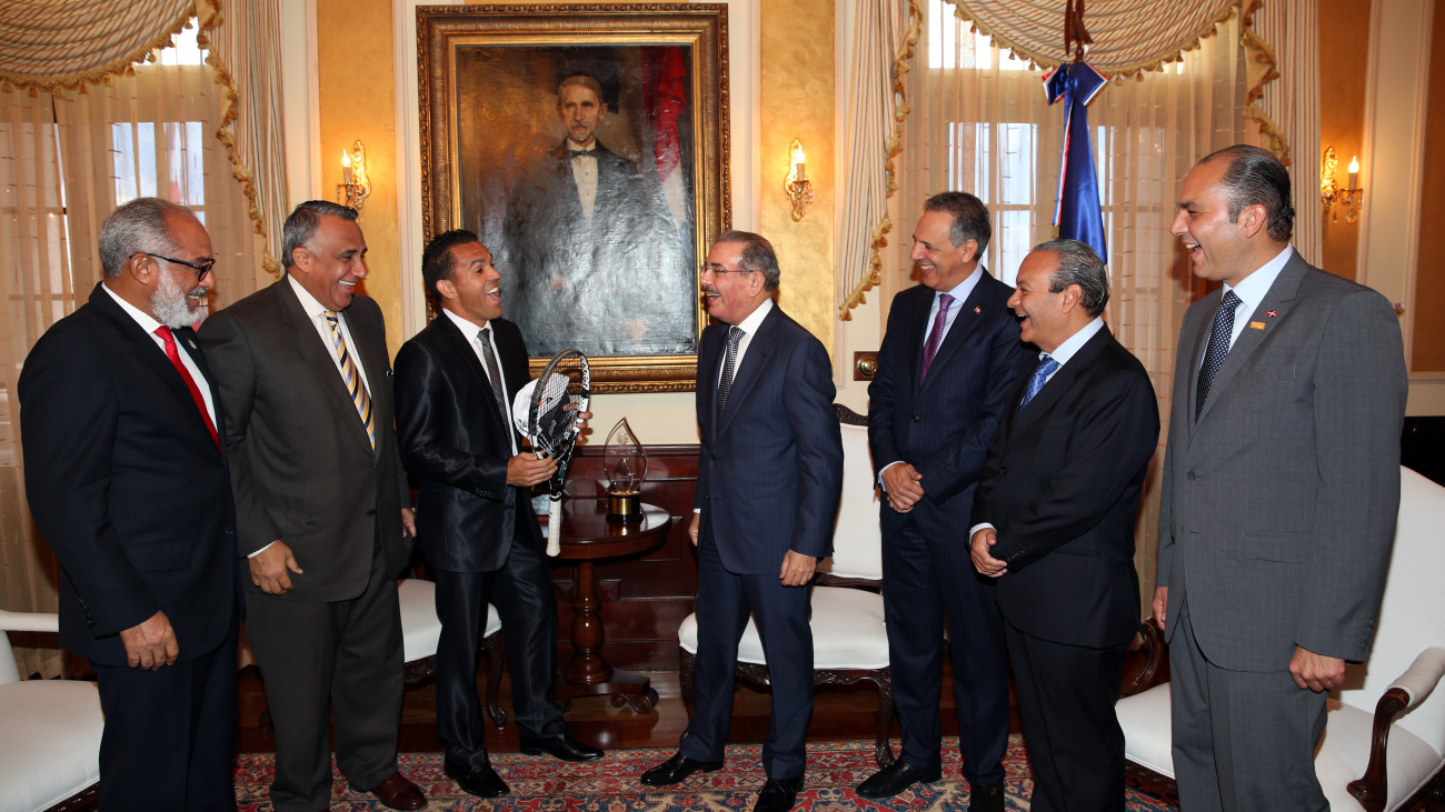 El presidente Danilo Medina declaró Embajador de Buena Voluntad al campeón de tenis dominicano, Víctor Estrella, quien conquistó recientemente el primer título de su carrera, en el Circuito de la Asociación de Tenis Profesional (ATP).
