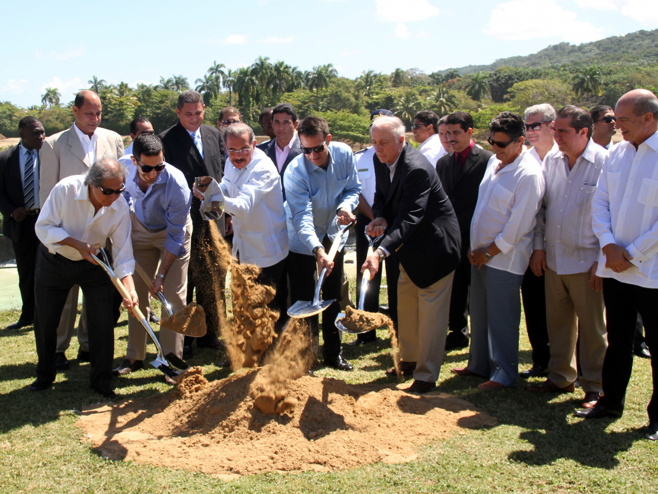 El presidente Danilo Medina junto a los inversionistas del proyecto, dieron el primer palazo simbólico que dejó iniciados los trabajos de construcción del proyecto turístico.