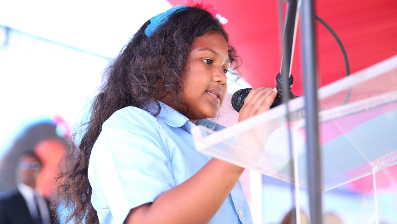 Anny Adames, de quinto grado de básica, agradeció al presidente Danilo Medina, por haber cumplido tan anhelado sueño, de entregarles un centro donde recibirán una educación de calidad.