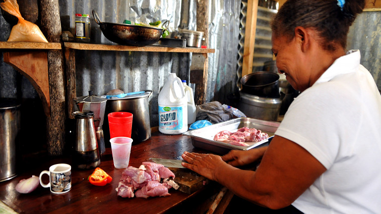 Eridania Rosario y otras mujeres emprendedora del sector La Barquita, vieron la oportunidad de instalar un comedor para 900 obreros o más que laboran en la construcción del proyecto habitacional La Nueva Barquita.