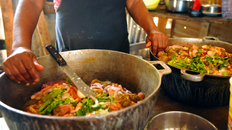 Eridania Rosario y otras mujeres emprendedora del sector La Barquita, vieron la oportunidad de instalar un comedor para 900 obreros o más que laboran en la construcción del proyecto habitacional La Nueva Barquita.