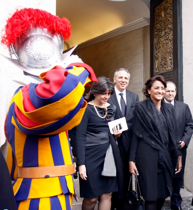 La primera dama de la República, Cándida Montilla de Medina, llega al Aeropuerto Internacional de Roma-Fiumicino, Italia, encabezando la comisión oficial dominicana.