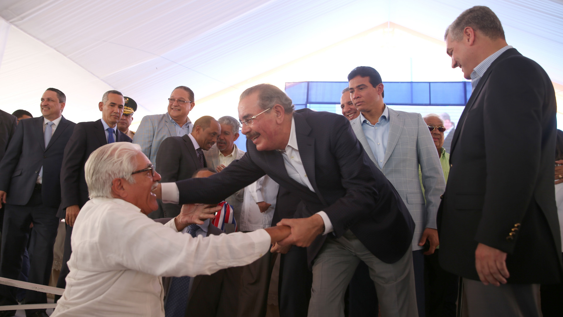 El presidente Medina saluda parte del público presente en recepción inaugural de la importante obra.